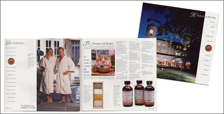 Holiday catalog distributed to new and existing guests. This catalog features Inn packages and products found exclusively at their world-renowned spa.